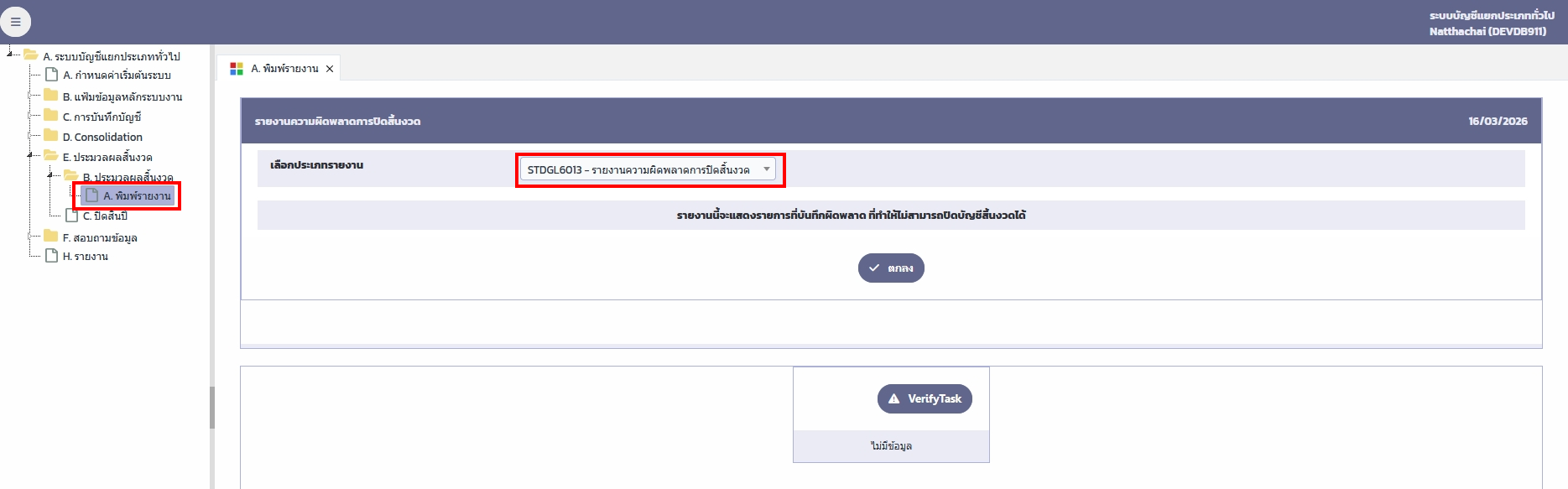 ระบบบัญชีทั่วไป : เพิ่มรายงานตรวจสอบความผิดพลาดปิดสิ้นงวด