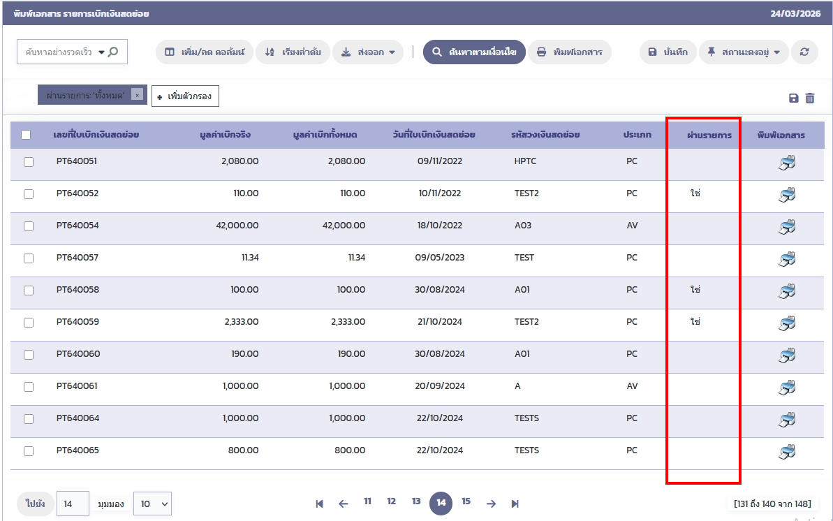 ระบบบริหารเงินสด : ปรับปรุงหน้าจอพิมพ์เอกสารให้สามารถแสดงรายการที่ถูกประมวลผลไปแล้วได้